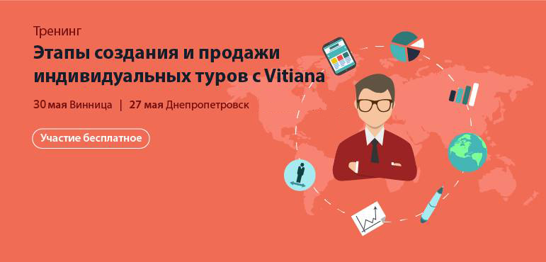Приглашаем руководителей и менеджеров туристических компаний Винницы и Днепропетровска на бесплатный тренинг Vitiana, посвященный этапам создания индивидуальных туров для клиентов.