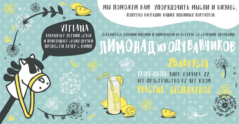 К закрытию летнего сезона, 26 августа, Vitiana проводит встречу под кодовым названием “Лимонад из одуванчиков”, куда приглашает только самых лучших клиентов