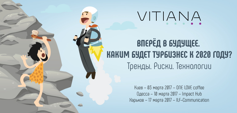 Итак, семинар «Вперёд в будущее. Каким будет турбизнес к 2020 году?» состоится в Киеве, Одессе и Харькове. Мы проанализируем опыт 2016 года, представим тренды 2017-го и расскажем, какие конкретные шаги необходимо предпринять, чтобы не превратиться в ископаемое.