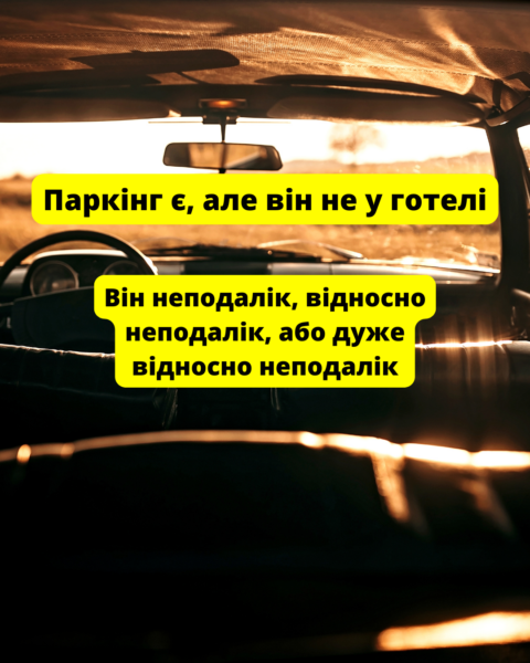 Туристи вирушають в автомандрівку, турагент знаходить готель де є позначка “паркінг” – все, кінець історії!